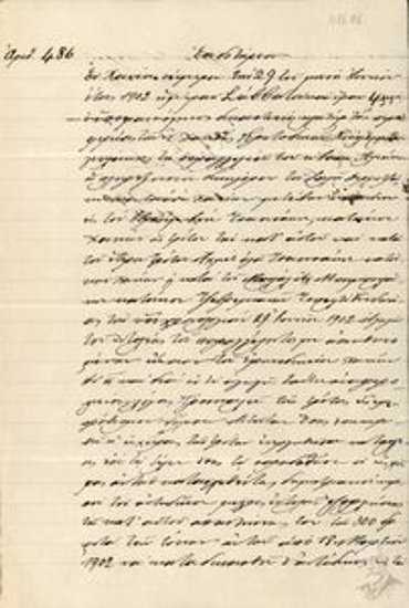 Επιδοτήριο αριθ. 486 κατά παραγγελία του Ιωάννη Γ. Ηλιάκη πληρεξούσιου δικηγόρου του Σαλή Δερμιτζάκη στον Ιβραήμ βέη Τσαουσάκη ως τρίτου της υπό χρονολογία 29 Ιουνίου 1902 αγωγής κατ' αυτού και κατά του έτερου τρίτου Αχμέτ αγά Τσαουσάκη και κατά του Μπιλάλ Αχ. Μπουμπουλάκη, που αφορά οικονομική υπόθεση.