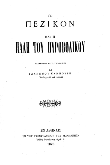 Το πεζικόν και η πάλη του πυροβολικού / μετάφρασις εκ του γαλλικού υπό Ιωάννου Καμπούρη ...