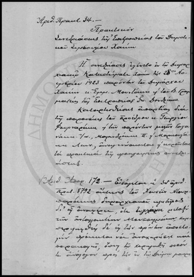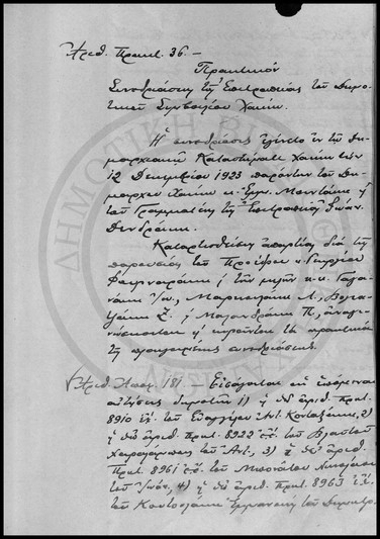 Πρακτικόν Συνεδριάσεως της Επιτροπείας του Δημοτικού Συμβουλίου Χανίων