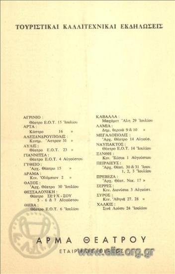 Άρμα Θεάτρου Αθήνα, Ελληνικός Οργανισμός Τουρισμού