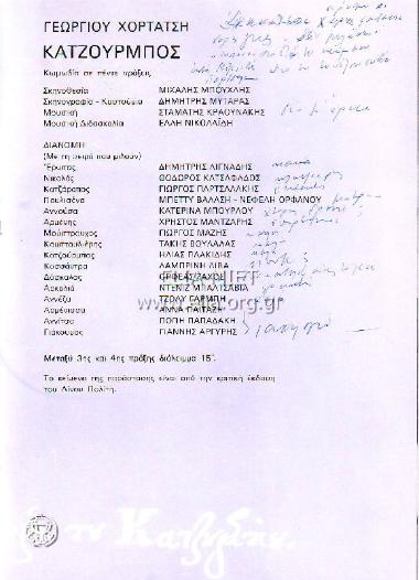 Κλώνης Κλεόβουλος, Σολομός Αλέξης, Μάνου Ραλλού, Τσαρούχης Γιάννης, Χορτάτσης Γεώργιος, Φωκάς Αντώνης