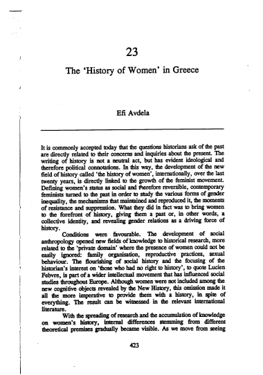 Η "ιστορία των γυναικών" στην Ελλάδα / Έφη Αβδελά.