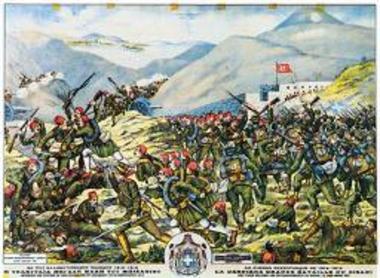 "Η ΤΕΛΕΥΤΑΙΑ ΜΕΓΑΛΗ ΜΑΧΗ ΤΟΥ ΜΠΙΖΑΝΙΟΥ/ ΕΚΤΟΠΙΣΙΣ ΤΩΝ ΤΟΥΡΚΩΝ ΕΚ ΤΩΝ ΧΑΡΑΚΩΜΑΤΩΝ ΤΟΥ ΜΠΙΖΑΝΙΟΥ ΤΗ 20 ΦΕΒΡΟΥΑΡΙΟΥ 1913 LA DERNIERE GRANDE BATAILLE DU BIZANI/ LES TURCS DELOGES DES RETRACHEMENTS DU BIZA"