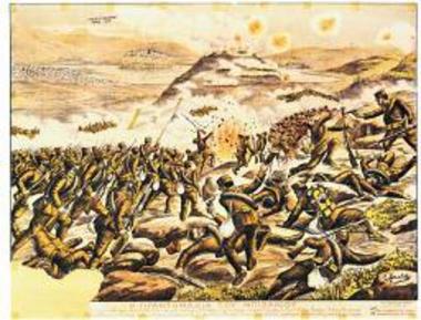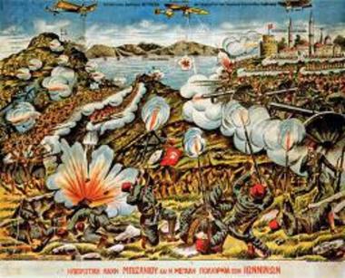 "Η ΓΙΓΑΝΤΟΜΑΧΙΑ ΤΟΥ ΜΠΙΖΑΝΙΟΥ ΓΕΝΑΙΑ (SIC) ΕΠΙΘΕΣΙΣ ΤΟΥ ΕΛΛ. ΣΤΡΑΤΟΥ ΚΑΤΑ ΤΗΣ ΟΧΥΡΑΣ ΘΕΣΕΩΣ ΤΟΥ ΑΓ. ΝΙΚΟΛΑΟΥ"