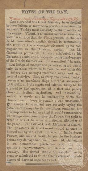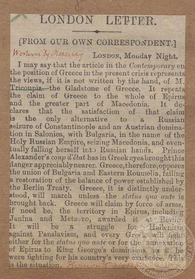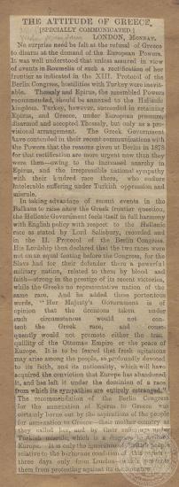 "The attitude of Greece", "The Western Monrning News", 26/1/1886