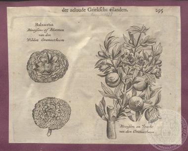 "Der aeloude Griekfche eilanders" Εικόνα από σελίδα βιβλίου με αναπαράσταση φυτών και ανθών, του Olfert Dapper. 1688
