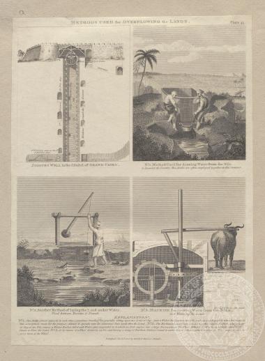"Methods used for overflowing the lands". Εικόνες με διάφορες μεθόδους αποστράγγισης νερών σε περιπτώσεις υπερχείλισης. Λιθογραφίες.01/01/1803