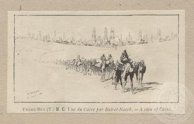 "Vue du Caire par Beb-el-Nasrh". Καραβάνι και άποψη του Καΐρου. Λιθογραφία.