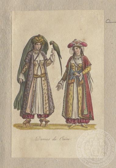 "Dames du Caire". Γυναίκες με πλούσιες ενδυμασίες στο Κάιρο. Λιθογραφία.