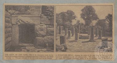 "The gate of the Lion" και "A byzantine relic" φωτογραφίες που συνοδεύουν το άρθρο της εφημερίδας "The Times" σχετικά με τις ανασκαφές της ιταλικής αρχαιολογικής αποστολής στο Βουθρωτό, 15/10/1928