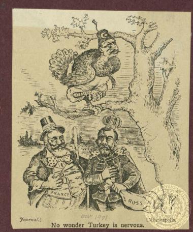 "No Wonder Turkey is Nervous". Σκίτσο στην εφημερίδα "Minneapolis Journal". Οκτώβριος 1901
