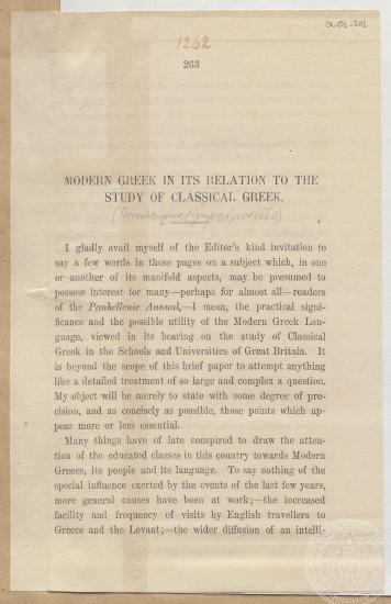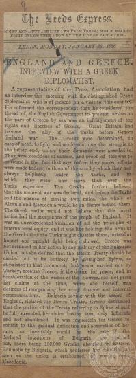 "England and Greece. Interview with a Greek diplomatist", "The Leeds Express", 25/1/1886