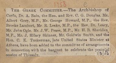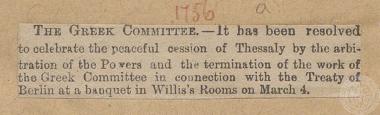 "The Greek Committee", άγνωστη εφημερίδα, 1/2/1882