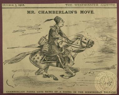 "Mr. Chamberlain's Move". Γελοιογραφία της εφημερίδας "The Westminster Gazette". 03/10/1902