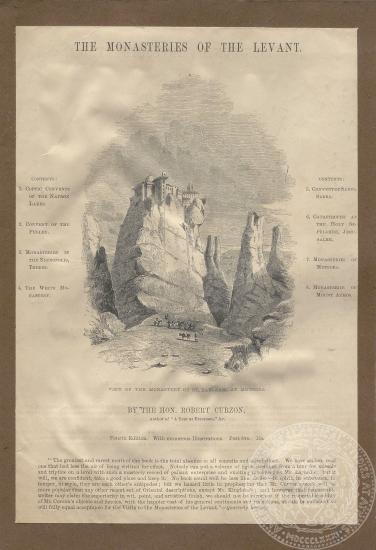 "The Monasteries of Levant", παρουσίαση του έργου του Hon. Robert Curzon σχετικά με τα Μοναστήρια στον ελλαδικό χώρο [1897 ]