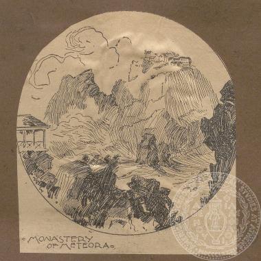 Χαρακτικό μοναστηριού στα Μετέωρα