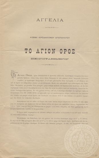 "Αγγελία, Το Άγιον Όρος εικονογραφημένον"