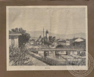 Άποψη του Μοναστηρίου (σημερινού Μπίτολα), πρωτεύουσας του ομώνυμου βιλαετίου, στις όχθες του Υδραγόρα, παραποτάμου του Αξιού (Βαρδάρη).
