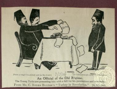"An official of the Old Regime". Αναδημοσίευση γελοιογραφίας από το βιβλίο "Turkey in Revolution". 03/03/1909