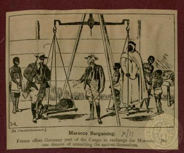 "Morocco Bargaining". Αναδημοσίευση γελοιογραφίας του περιοδικού "De Amsterdammer". ΧΧ/10/1911