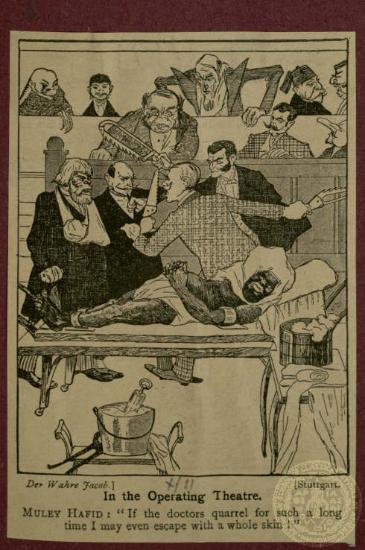 "In the Operating Theatre". Αναδημοσίευση γελοιογραφίας του περιοδικού "Der Wahre Jacob". ΧΧ/10/1911