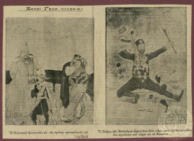 Αναδιμοσίευση δύο γελοιογραφιών των εφημερίδων "Rire" & "Pasquino". XX/01/1904