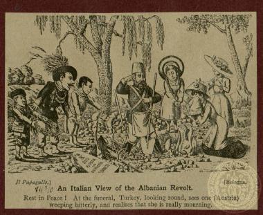 "An Italian View of the Albanian Revolt". Αναδημοσίευση γελοιογραφίας του περιοδικού "Il Papagallo". ΧΧ/07/1910