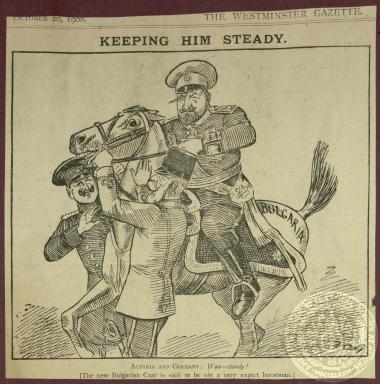 "Keeping him Steady". Αναδημοίευση γελιογραφία της εφημερίδας "The Westminster Gazette". ΧΧ/11/1908