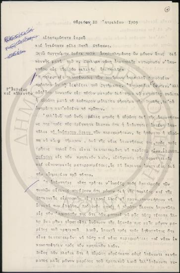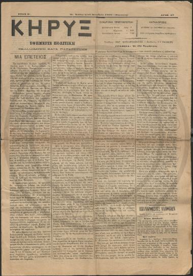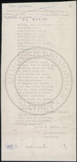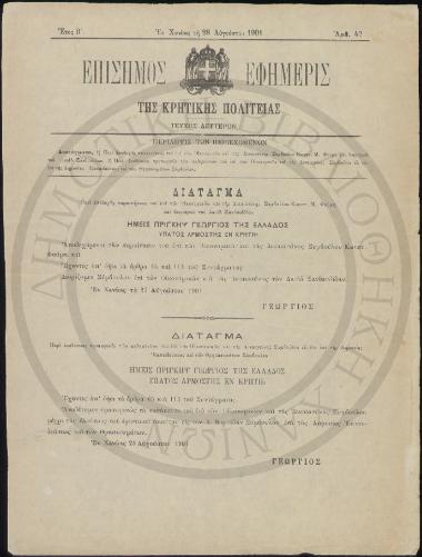 The collections include primary documents such as books, magazines, photographs, archives, minutes of the Municipal Council of Chania, etc., which concern the historical, social, political, economic and cultural development of our country. The digital collections are constantly enriched with new digitized material, covering the needs of researchers and the general public. The digitization and documentation work was implemented within the framework of the project "Digitization and promotion of the cultural collections of the Municipality of Chania", which has been included in the Operational Program "Competitiveness Entrepreneurship and Innovation (EPAnEK 2014-2020)".