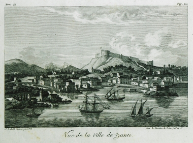 Άποψη της πόλης της Ζακύνθου. Στο βάθος διακρίνεται το ενετικό φρούριο στην περιοχή της Μπόχαλης.