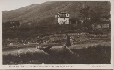 Εμπορικό πλοίο αγκυροβολημένο δίπλα στην τσιμεντοβιομηχανία "Όλυμπος", έξω από την πόλη του Βόλου. Το εργοστάσιο τσιμέντων "'Ολυμπος" ιδρύθηκε το 1924 και, κατόπιν χρεωκοπίας, συγχωνεύθηκε με την ΑΓΕΤ "Ηρακλής" το 1928.