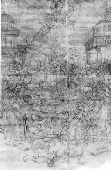 Σχεδιαγράφημα των περί το ναΐδριον της Ευαγγελιστρίας εν Σπέτσαις ανευρεθέντων θεμελίων της βασιλικής (σχ. του καλλιτέχνου Βύρωνος Κεσσέ).