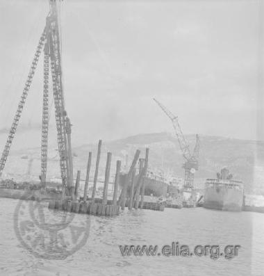 Πλοία σε πλωτές δεξαμενές στα "Ελληνικά Ναυπηγεία" Σκαραμαγκά.