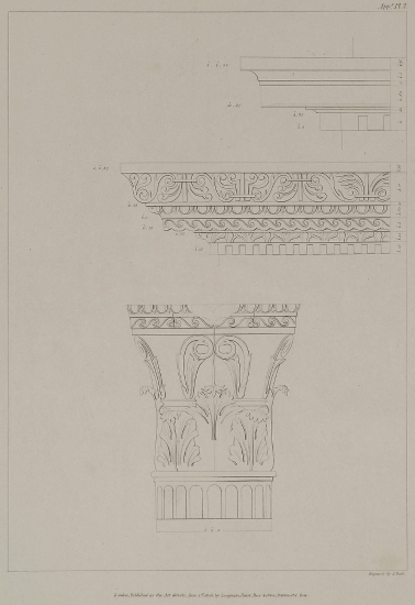Όψη κορινθιακού κιονοκράνου, διάκοσμου του επιστυλίου και σχέδιο γείσου από τη Μάλτα.