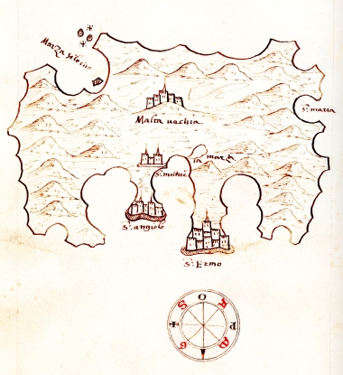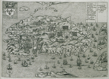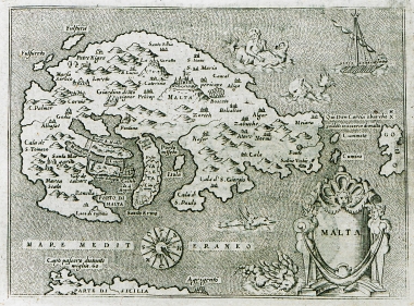 Χάρτης της Μάλτας με αναφορά στην πολιορκία του νησιού από τους Οθωμανούς στα 1565.