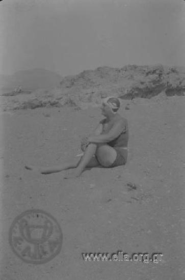 Ο Γιώργος Βαφιαδάκης, με μαγιό, στην παραλία της Νεαπόλεως.