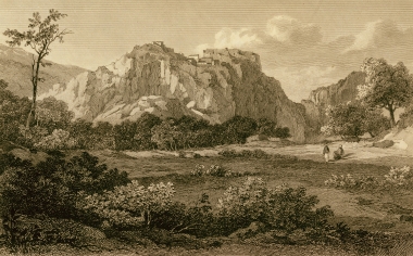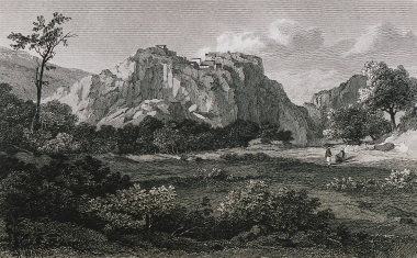 Το χωριό Πιάδα (σήμερα Νέα Επίδαυρος). Διακρίνεται το βυζαντινό κάστρο.