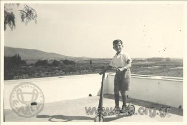 Ο μικρός Μαρίνος Ι. Γερουλάνος σε βεράντα με πατίνι.