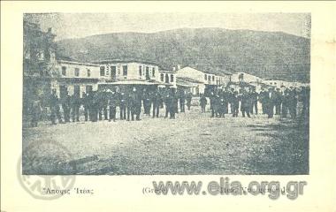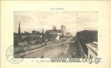 Itéa (Grèce). La rue principale, l' école et l' église.