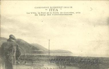 Campagne d' Orient 1914-1918. "Itea". La ville, le Port et le Golfe de Corinthe, pris du Camp des Permissionnaires.