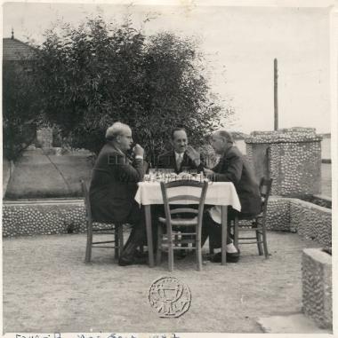 Ο Δήμαρχος Αθηναίων, Κώστας Κοτζιάς, με τους Γερμανούς οργανωτές των Ολυμπιακών Αγώνων.