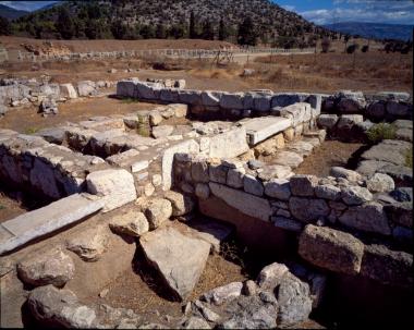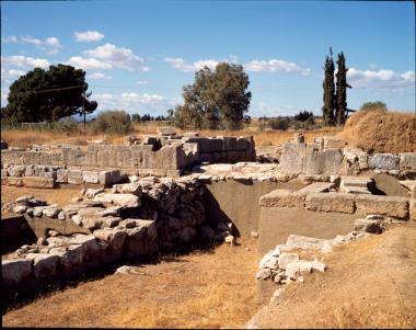 Λεπτομέρεια τοιχοδομίας ελληνιστικών και ρωμαίκών κτισμάτων. Σε πρώτο πλάνο ο χώρος του αιθρίου.