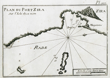Χάρτης του λιμανιού στη Σύρο και άποψη της Άνω Σύρου.