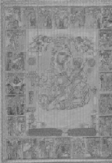 Prayer shawl, cream silk, grey-blue stripes with inscribed cartouches, light blue square corner reinforcements with Jewish motifs, belonged to David Asseo.