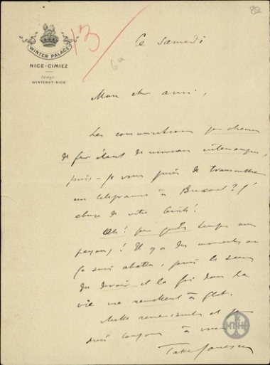 Επιστολή του T.Ionescu προς τον Ε.Βενιζέλο σχετικά με τον επικείμενο γάμο του.