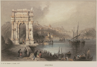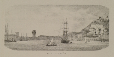 Άποψη του λιμανιού της Ανκόνας στην Ιταλία. Στα δεξιά διακρίνεται το λοιμοκαθαρτήριο, ενώ στα αριστερά η Πύλη του Τραϊανού.