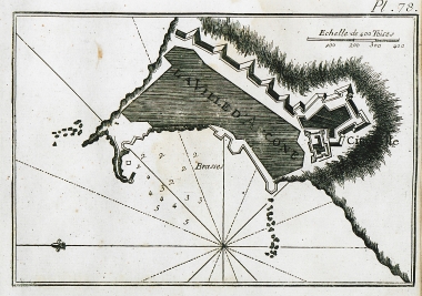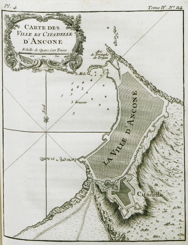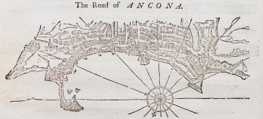 Χάρτης του λιμανιού, της πόλης και του φρουρίου της Ανκόνας στην Ιταλία.