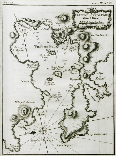 Χάρτης του λιμανιού της Πούλα, (στην αρχαιότητα Πόλαι), στην Κροατία.