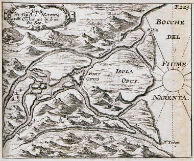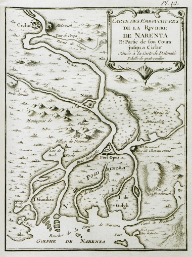 Χάρτης των εκβολών του ποταμού Νερέτβα στην Κροατία.