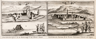Χάρτης των νήσων Κρκ, Κρες, Ραμπ, Παγκ, και των ακτών της Δαλματίας, όπου σημειώνονται οι πόλεις Σεν και Νιν.